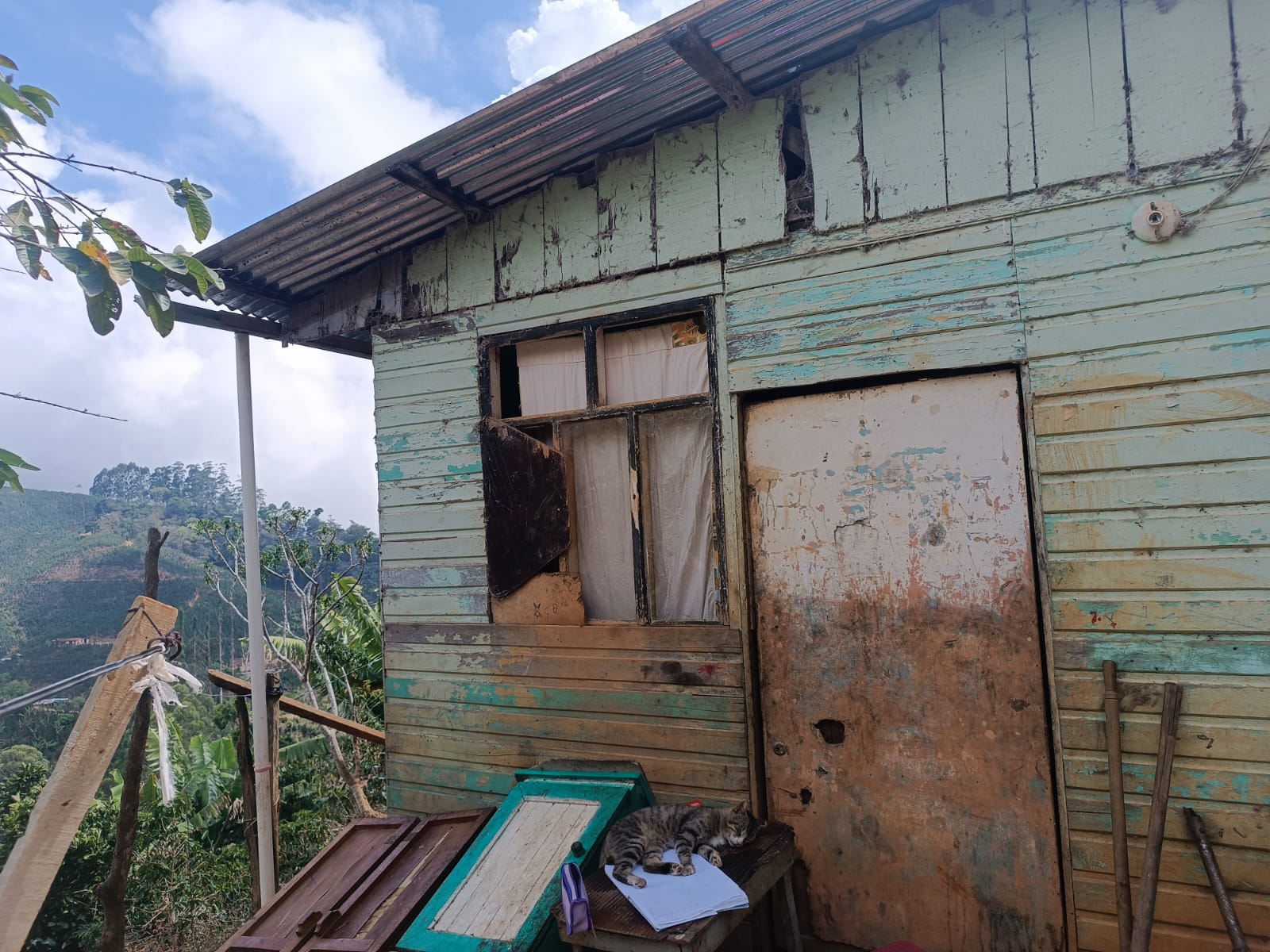 Con goteras y huecos, sin servicio sanitario, poco espacio para dormir y escasez de alimentos; así vive una familia de 8 miembros en San Carlos de Tarrazú.Entre ellos una adulta mayor de 84 años de edad y uno más que está por nacer.